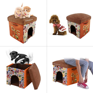 2-in-1 Multifunctional Foldable Washable Pet Cats Small Dogs Soft House Bed Living Room Foot Rest Cushioned Stool Cat Dog House $242.85 $485.70
